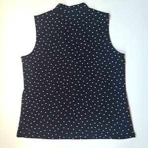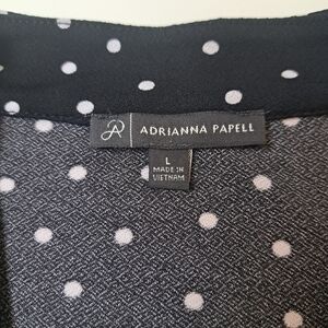 ADRIANNA PAPELL short sleeve black blouse with white dots size L.