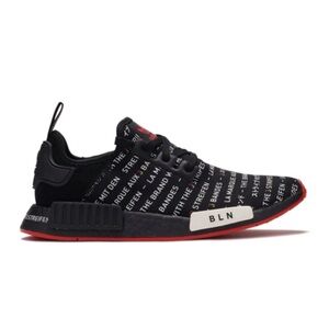 The NMD_R1 'Berlin' released as part of the Passport Pack, giving the nod to the capital of Germany. The shoe's mesh upper features an international touch, with 'The Brand with the Three-Stripes' appearing in a variety of languages. Underfoot, the black Boost midsole is bolstered by EVA plugs, with the forefoot plug calling out Berlin itself. A red rubber outsole provides traction and a hint of color.