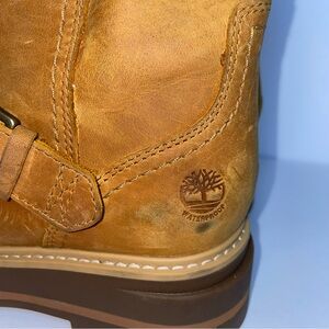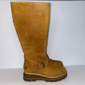 Timberland Cervinia Valley 16" Tall Brown Leather Waterproof Boots Women’s Size 6. Several scratches and stains/discolorations in leather. Shoebox not included. (Lot#EI)