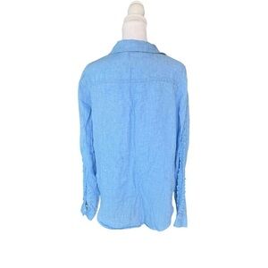 Lilly Pulitzer - Blue Linen Button Down Shirt Blouse Lace Details Sz M