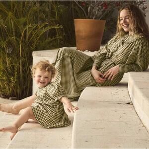 DOEN Paris Dress in Olive Gingham Print S