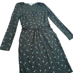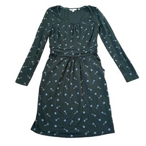 Boden Mabel Jersey Green Lock & Key Print Dress with pockets, size 8 Petite