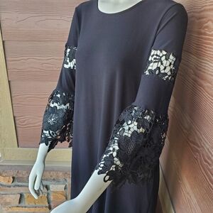 Alfani Lace Sleeve Pullover Midi Dress Size 8 Women's Black Stretch A-Line NWOT