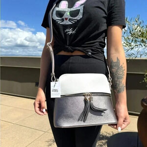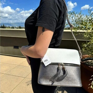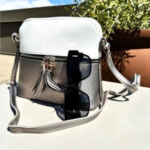 NWT Crossbody Tassel Zipper Puller Accent Two Tone Bag WHITE