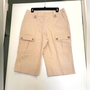 ST. JOHN Women Beige Cargo Bermuda Shorts Size 6 Silver Hardware