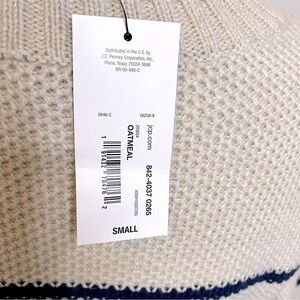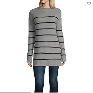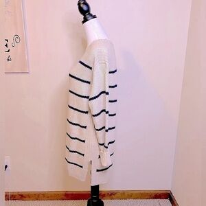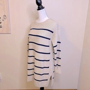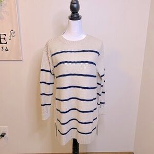 NWT a.n.a Oatmeal and Navy Stripe Crewneck Tunic Length Sweater Size Small