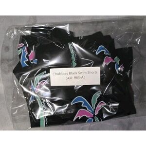 The Chubbies Swim Trunks in Men's Size Small are a stylish and fun choice for beach or pool days. Featuring a black floral pattern with a tropical palm tree theme, these lined swim trunks are both comfortable and practical. The drawstring waist ensures a secure fit, while the regular sizing and bottom style offer a flattering silhouette. Perfect for those looking for a preppy and trendy swimwear option.