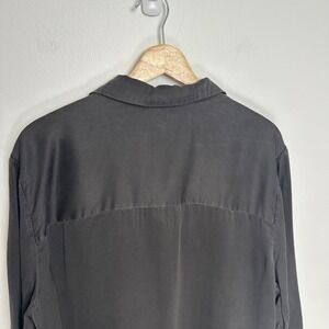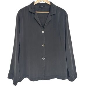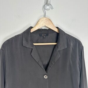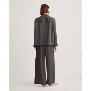 Quince 100% Washable Silk Pajama Long Sleeve Top Charcoal M