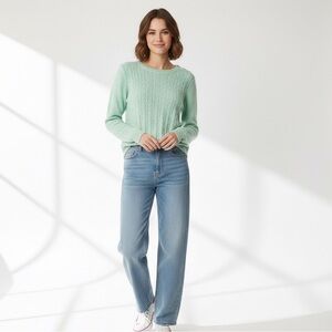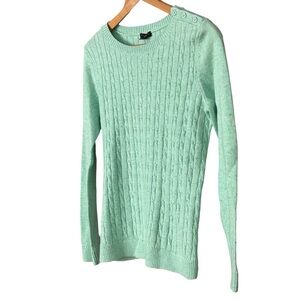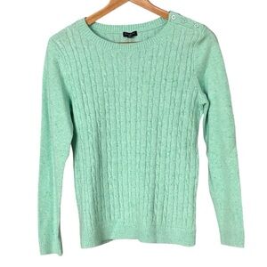 Talbots NWT Mint Green Speckled Cable Knit Sweater Petite Medium Button Shoulder