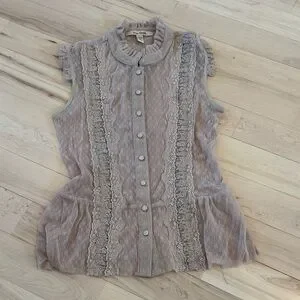 Free People-sleeveless sheer lace ruffle peplum shirt top-Fairycore-Boho-Y2K-M