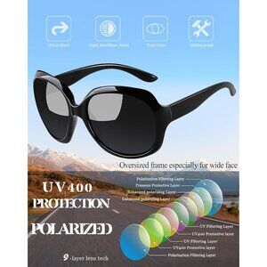 EXCELLENT UV400 PROTECTION: The vision lens of the large sunglasses are 400UV rated, it can block 99%-100% of both UVA and UVB radiation. The polarized women’s glasses with scratch resistant lens are essential to protecting your eyes against long-term UV damage and keeping your eyes healthy. Whether it is cloudy or sunny, uv sunglasses are the effective ways to prevent aging of skin around your eyes. The stylish sunglasses are comfortable to wear while guaranteeing you 100% UV protection