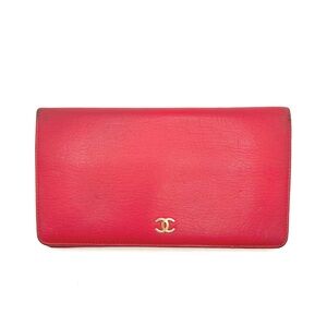 Authentic CHANEL CC Vintage Red Leather Bifold Long Wallet