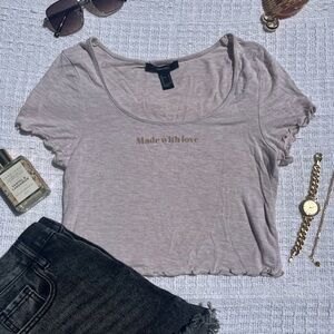 Shirt is in perfect condition, size small. Ruffle trim details + words on front. Super soft and stretchy fabric!