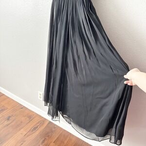 J. Peterman Black Silk Chiffon Ruched Empire Waist Gown Dress Women's Size 6