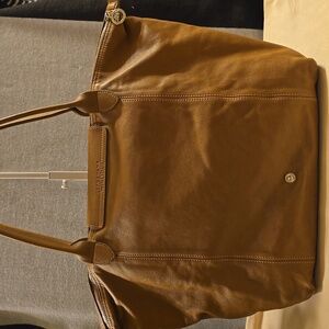 Longchamp brown leather tote bag. this is not the nylon ones, it's leather. in excellent condition, just one corner rubbing and clean inside.