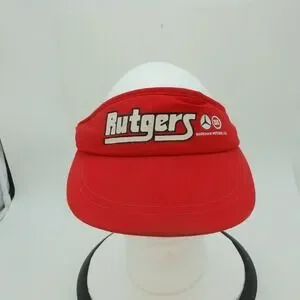 Keywords: Rutgers, Markham Motors, visor, hat, red, adjustable strap, baseball cap, college, sports, casual, outdoor, sun protection