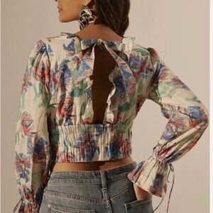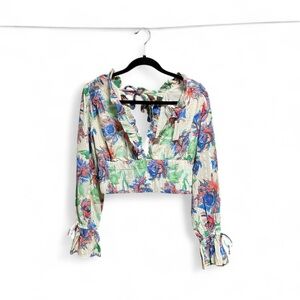 Anthropologie Floral Plunging V Neckline Long Sleeve Crop Top Size XS - NWT