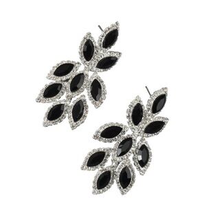 Make a bold, elegant statement with these stunning black marquise crystal chandelier earrings. Designed with multiple marquise-cut black stones framed by sparkling clear rhinestones, these earrings offer dramatic shine with a refined, glamorous silhouette.