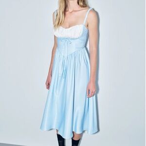 NWT Fashion Brand Company Boob Shelf Satin Dress Blue/White