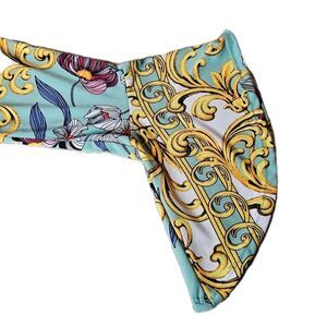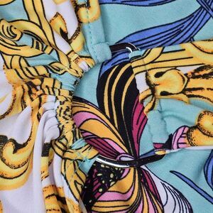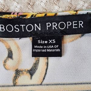 Boston Proper Ornate Scroll Floral D-Ring Gathered Front Flutter Sleeve Blouse