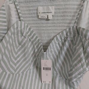 Stylish green crop top with stripes. Features delicate straps. Perfect for everyday wear.