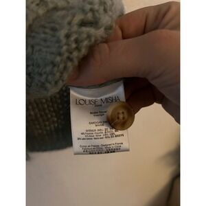 Keywords: Louise Misha, cardigan, sage green, bobble knit, cable knit, button up, V-neck, artisanal, cozy, textured, French style, bohemian, fall fashion, winter wear, French, Paris, warm, cozy, soft, quiet luxury, oversized, slouchy, boxy, academia, fairy, boho, cozycore, cabincore, cottage, chunky