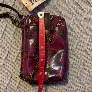 One big opening, 6 card compartments, 1 smaller opening, and a zipper closure on the inside to hold cards, money, coupons, anything else you need for the go!