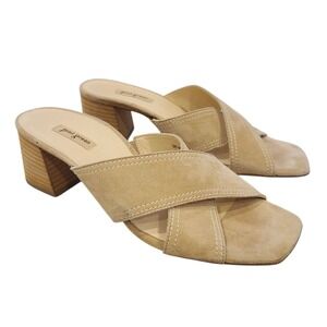 Paul Green Sandals Block Heels Suede Two Strap Slip On Slided Beige US 8 UK 5.5