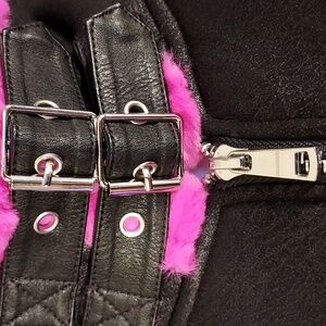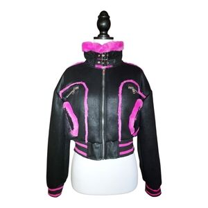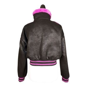 B. Coature NWT Black & Hot Pink Faux Fur Cropped Bomber Moto Jacket Size L