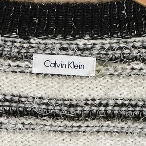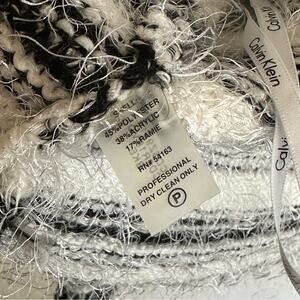 Calvin Klein Cropped Black and White Striped Eyelash Open Front Cardigan Sweater
