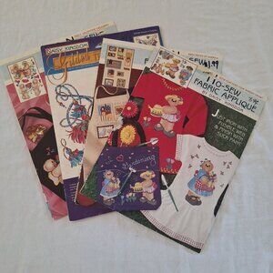 If you love crafts but hate sewing, this vintage Daisy Kingdom lot is your style. With no-sew appliqué and transfers, you can create adorable décor without pricking your fingers. Perfect for anyone who prefers a glue gun to a needle.