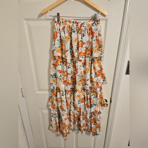 WAYF White And Orange Floral Tiered Ruffle Maxi Skirt Size Small