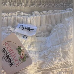 This elegant white lace skirt is perfect for any occasion. Its delicate design adds a touch of sophistication to your wardrobe.
