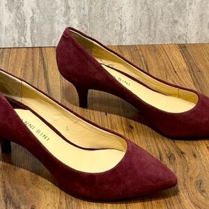 Beautiful purple/eggplant suede leather pumps by Gianni Bini. Size 6.5M. Very good condition, no real signs of wear except some minor flaking on the insole (see last pic) which of course does not show when worn. Heel 2". From smoke free environment.