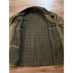 The St John's Bay Men's Chore Barn Coat in size 3XLT is a winter essential featuring a quilt-lined interior for extra warmth. Made of durable cotton outer shell with a polyester lining, this mid-length coat has a corduroy collar for added style. The coat is designed for casual occasions with a button and snap closure, making it easy to put on and take off during the colder seasons. The tan color and solid pattern give it a classic look, while the heavyweight warmth makes it perfect for staying cozy in chilly weather.