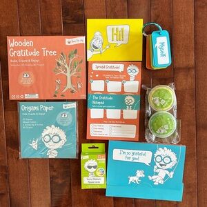 Gratitude in a Box activity kit for children. Includes 50+ thankful practices. Ideal for ages 4-6 and 7+. Opened, but unused. Pictures show inside content untouched. Excellent condition. Great gift!