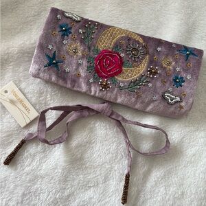 New World Market embroidered beaded velvet clutch bag wallet with a strap NWT, new with tag, boho bohemian