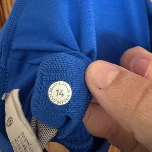 Elevate your workout with this stylish blue sports bra. Designed for comfort and support. Good used condition. Rip tag still there but literally hanging by a thread. Really pretty blue color, called Blazer Blue Tone. Size 14.