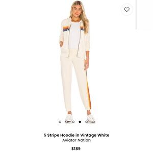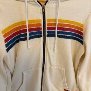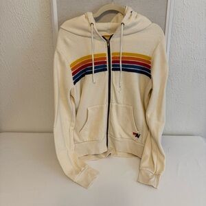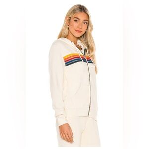 Women's Cream Zip-Up Hoodie with Rainbow Stripes 5 stripe hoodie in vintage whit