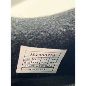 Branding and tags: NORTIV 8 logo printed on insoles and embossed on outsoles, NORTIV 8 text at the side, interior size label with style code JS19007M, size table, Made in China, and factory code AEBBLEER.