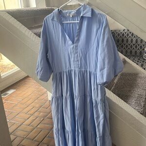 The perfect color for all those spring parties . It’s glory and flattering. P to p 29. Length 47. Fabric is rayon. It’s lined on the skirt