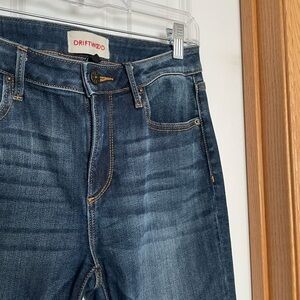 EUC pair of Colette style jeans from Driftwood in a size 27. These jeans have embroidery around the hem with a raw hem cut to the denim. 27” inseam. A small spot on the back right as pictured; looks like it would easily come out with a wash. No stains or flaws!