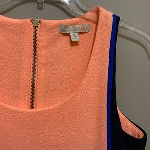 Elevate your style with this chic mini dress in a striking peach and navy combination. Perfect for any occasion, this dress offers a flattering fit and modern design.