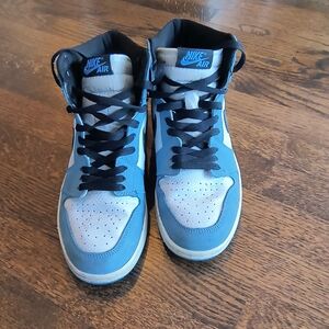 Nike Air Jordan 1 High in sky blue and black. Sleek design with classic appeal. Excellent condition, worn only a few times.