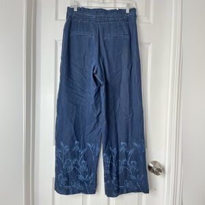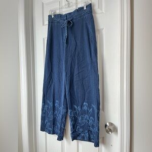 White House black market Women's Blue Floral tencel wide legs pants size 6S