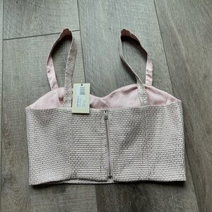 Ramy Brook Raquel Metallic Bustier in Pale Pink Size 10