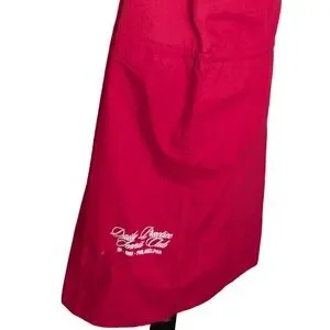 100% cotton. Pullover styling with double stripe straps and drawstring at back waist. Falls approximately 36.5" in length.