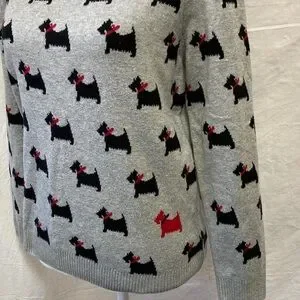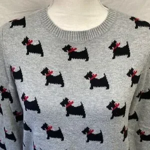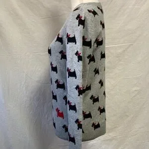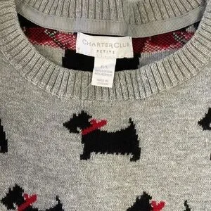 Charter Club PETITE Gray Sweater with Black Scottie Dog Pattern