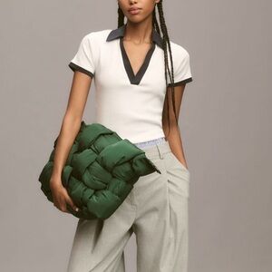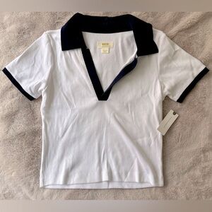 NWT Anthropologie Maeve Colorblock Ribbed Polo Shirt White Black Size M