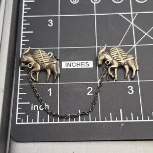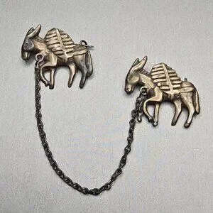 VTG Los Castillo Silver Donkey Brooch 3" Partial 2 Mule Pin Mexico